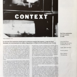 (Antoni Muntadas). Muntadas: Videos 1971 – 1996. Programa 41. Museo Nacional Centro d Arte Reina Sofia, Barcelona, 30 de septiembre – 31 de octubre de 1998