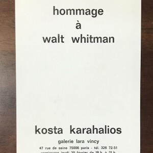 Kosta Karahalios. Hommage à Walt Whitman. Galerie Lara Vincy, Paris, 2 février-15 mars 1975