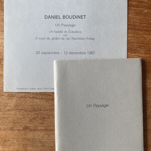 (Ian Hamilton Finlay). Daniel Boudinet. Un paysage, ou 9 vues du jardin de Ian Hamilton Finlay. No place: Foundation Cartier pour l’Art Contemporain, 1987