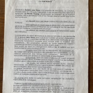 (Joël Hubaut). Projet d’un salon de musique du silence: L’aire – atome musical par Joël Hubaut. No Date. [1993]