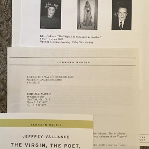 Jeffrey Vallance. The Virgin, The Poet, and The President. Lehman Maupin, New York, 5 May – 16 June 2001