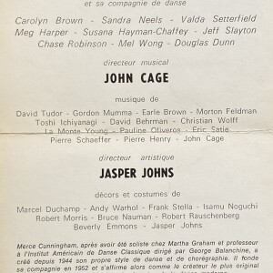 (Merce Cunningham). Merce Cunningham et sa compagnie de dance. Directeur musical: John Cage. Directeur artistique: Jasper Johns. Théatre de France, Paris, 3-16 juin 1970
