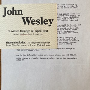 John Wesley. “Selected Paintings 1963 – 1973.” fiction / nonfiction, New York, 6-31 March 1990