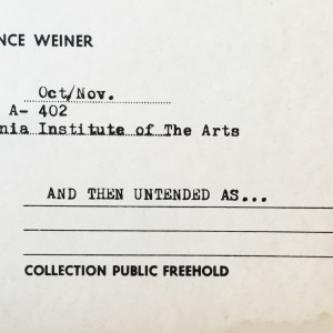 Lawrence Weiner. And then untended as… Gallery A. 402, California Institute of the Arts, [Valencia, California] October – November 1972