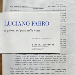 Luciano Fabro. Il giorno mi pesa sulla notte. Barbara Gladstone, New York. Opening February 1, 1995