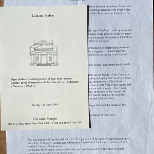 Luciano Fabro. Ogni ordine è contemporaneo d’ogni altro ordine: quattro modi d’esaminare la facciata del sa. Redentore a Venezia (1972-3). Christine Burgin, 25 May – 30 June 2001