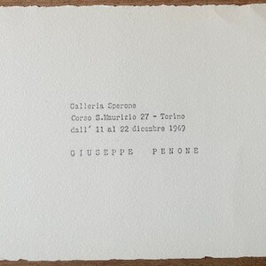 (Giuseppe Penone). Giuseppe Penone. Galleria Sperone, Torino, 11 – 22 dicembre 1969