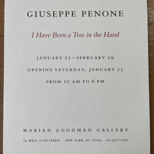 (Giuseppe Penone). Giuseppe Penone. Marian Goodman Gallery, New York, January 25 – February 29, [1992]