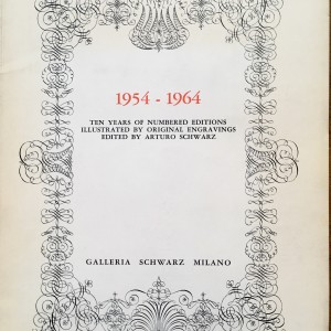 1954 – 1964 (i.e. Nineteen fifty-four – Nineteen sixty-four). Ten years of numbered editions illustrated by original engravings edited by Arturo Schwarz. (Cover title). Milan: Galleria Schwarz, 1964. (Catalogo n. 32).