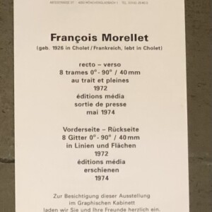 (François Morellet). François Morellet. Galerie Seestrasse, Rapperswil, St. Gallen, 20., 21. Juli – 24. August 1974