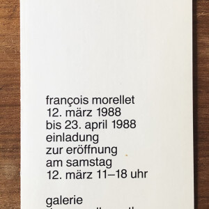 (François Morellet). François Morellet. Galerie D+C Mueller–Roth, Stuttgart, 12. März – 23 April 1988