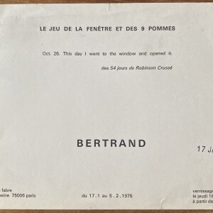 (Jean-Pierre Bertrand). Bertrand. Galerie Eric Fabre, Paris, 17.1.-5.2.1975
