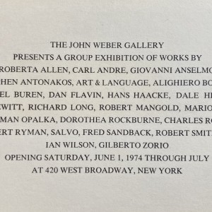(John Weber Gallery, New York). The John Weber Gallery presents a group exhibition (…) June 1, 1974 through July