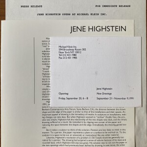 (Jene Highstein). Josephine Gear. Jene Highstein. New York: Michael Klein, no date