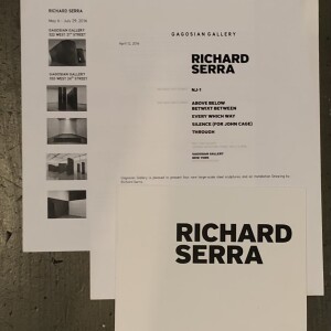 Richard Serra. May 7 – July 29, 2006, Gagosian Gallery, New York. 522 West 21st Street: NJ-1 / 555 West 24th Street: Above Below, Betwixt Between. Every Which Way, Silence (for John Cage), Through.