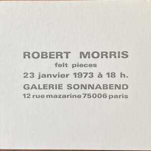 Robert Morris. Felt Pieces. Galerie Sonnabend, Paris, 13 janvier 1973