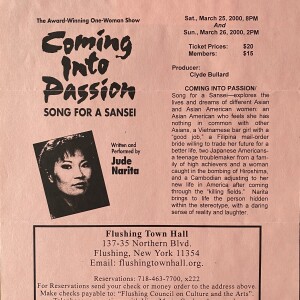 Jude Narita. Coming Into Passion. Song for a Sansei. Flushing Town Hall, Flushing, New York, March 25, 26, 2000