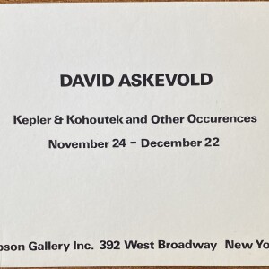 David Askevold. Kepler & Kohoutek and Other Occurrences. John Gibson Gallery, New York, November 4 – December 22, [1973]