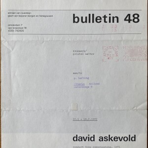 David Askevold. Concert tone compressions, 1971. art & project, Amsterdam, 22.1. – 28.2.1972. (Bulletin 48)