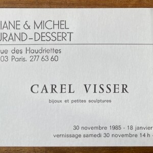 Carel Visser. Bijoux et petites sculptures. Liliane & Michel Durand-Dessert, Paris, 30 novembre 1985 – 18 janvier 1986
