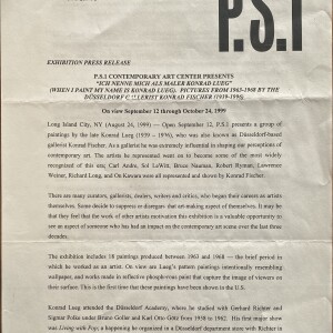 (Konrad Lueg). “Ich nenne mich als Maler Konrad Lueg.” (When I paint my name is Konrad Lueg). Pictures from 1963-1968. September 12 – October 24, 1999
