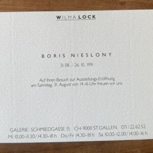(Boris Nieslony). Boris Nieslony. Wilma Lock, St. Gallen, 31. August – 26. Oktober 1991