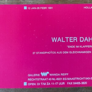 Walter Dahn. “Ende im Klapperhof” / 27 Standphotos aus dem gleichnamigen Film. 12. Januar – 28. Februar 1991