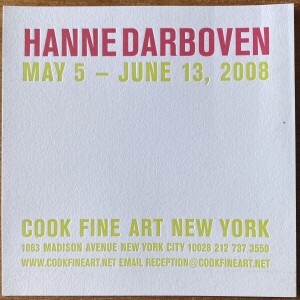 (Hanne Darboven). Hanne Darboven. Cook Fine Art New York, New York, May 5 – June 19, 2008