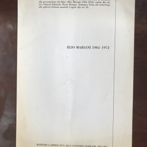 (Elio Mariani). Elio Mariani 1965-1972. Galleria Schwarz, Milano, 2 aprile 1974