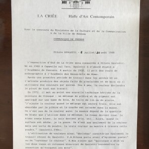 (Ettore Spalletti). Ettore Spaletti (sic). La Criée, Halle d’Art Contemporain, Rennes, 6 juillet-30 aout 1988