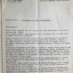 (Vettor Pisani). Mimma Pisani. ‘Vettori Pisani: Il consiglio non ama Joseph Beuys.’ 1977