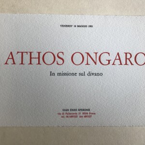 (Athos Ongaro). Athos Ongaro. In missione sul divano. Gian Enzo Sperone, Roma, 14 maggio 1993