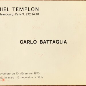 (Carlo Battaglia). Carlo Battaglia. Daniel Templon, Paris, 18 novembre – 10 décembre 1975