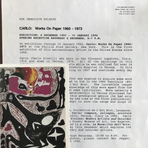 (Carlo, Carlo Zinelli known as). Carlo. Phyllis Kind Gallery, Chicago, March 4-30, 1994