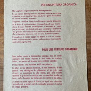 Per una pittura organica / Pour une peinture organique. Milano: Movimento Arte Nucleare, giugno 1957 Manifesto. Guido Biasi, Mario Colucci, Piero Manzoni, Ettore Sordini, Angelo Verga