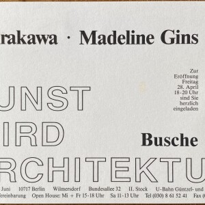 (Shusaku Arakawa, Madeline Gins). Kunst wird Architektur. Busche, Berlin, 28. April – 17. Juni [1995]