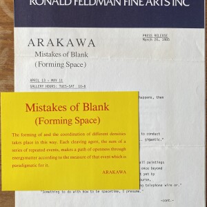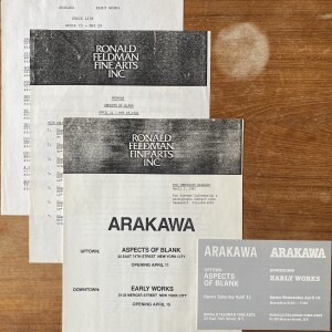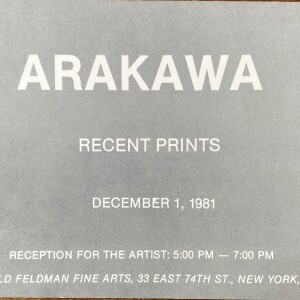 (Shusaku Arakawa). Arakawa. Ronald Feldman Fine Arts, New York. Uptown: Aspects of Blank. Opens April 11, [1981] / Downtown: Early Works. Opens April 15, [1981]