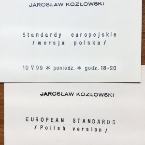 Jarosław Kozłowski. Standardy europejskie / wersja polska. Galeria Potocka, Kraków, 10 May 1999