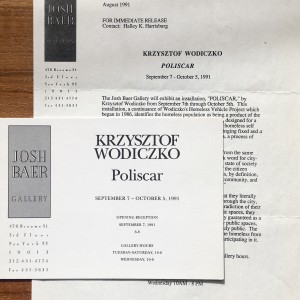 Kryzstof Wodiczko. Poliscar. John Baer Gallery, September 7 – October 5, 1991