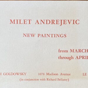 Milet Andrejevic. New paintings. Noah Goldowsky (in conjunction with Richard Bellamy), New York, March 2 – April 3, [1976]