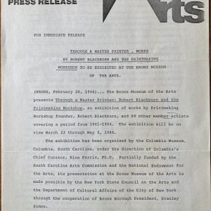 (Robert Hamilton Blackburn). Through a Master Printer, Works by Robert Blackburn and the Printmaking Workshop To Be Exhibited at the Bronx Museum of the Arts
