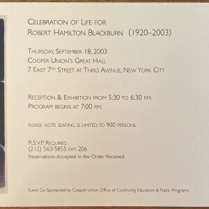 (Robert Hamilton Blackburn). Celebration of Life for Robert Hamilton Blackburn. Cooper Union’s Great Hall, New York, September 18, 2003