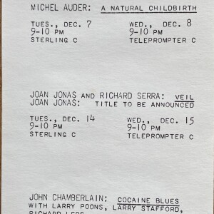 (Experiment in Art and Technology). Artists and Television. December 7, 14, 21, 28, [1971]