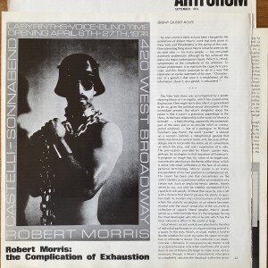 (Robert Morris). Jeremy Gilbert-Rolfe. Robert Morris: The Complication of Exhaustion. Artforum. Volume 13/#1, September 1974