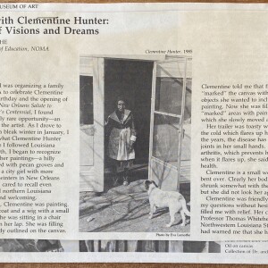 (Clementine Hunter). Eva Lamothe. A Visit with Clementine Hunter: Painter of Visions and Dreams. New Orleans Museum of Art, Arts quarterly, 1985. Winter 1985. Clipping