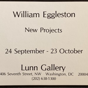 William Eggleston. New Projects. Lunn Gallery, Washington, D.C., 24 September – 23 October [1982]