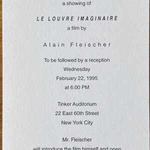 Alain Fleischer. Le Louvre imaginaire; a film by Alain Fleischer. The French Institute / Alliance Française Tinker Auditorium, 22 East 60th Street, New York, February 22, 1995