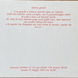 (Alberto Garutti). Alberto Garutti. Françoise Lambert, Milano, 16 novembre 1982