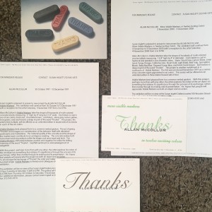 Allan McCollum. 2 exhibition announcement cards and 2 press releases, Friedrich Petzel Gallery, New York