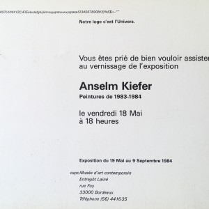 Anselm Kiefer. Peintures de 1983-1984. capc Musée d’art contemporain, Bordeaux, 18, 19 mai – 9 septembre 1984